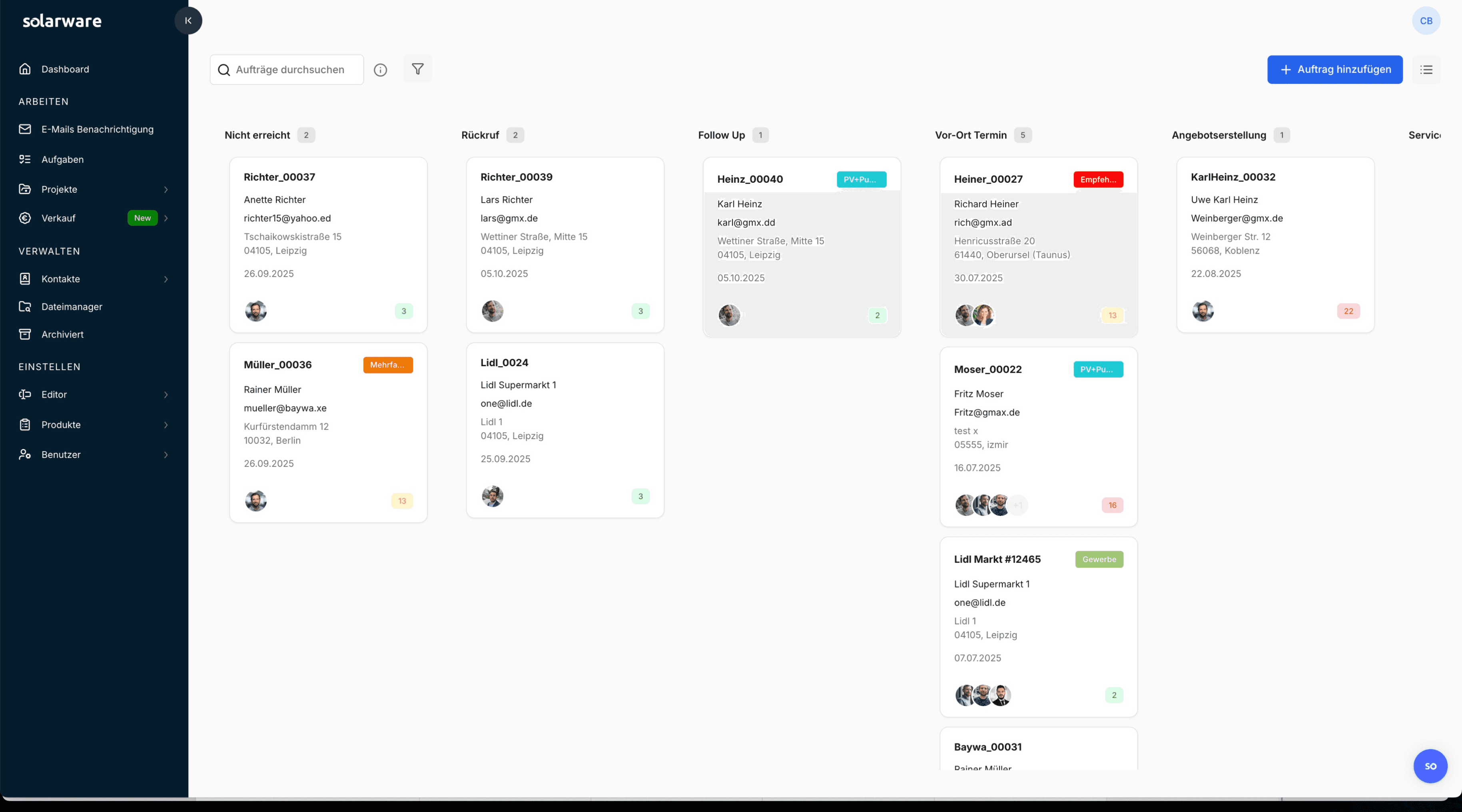 Projekt Software für Solarteure mit 5-60 Mitarbeitern